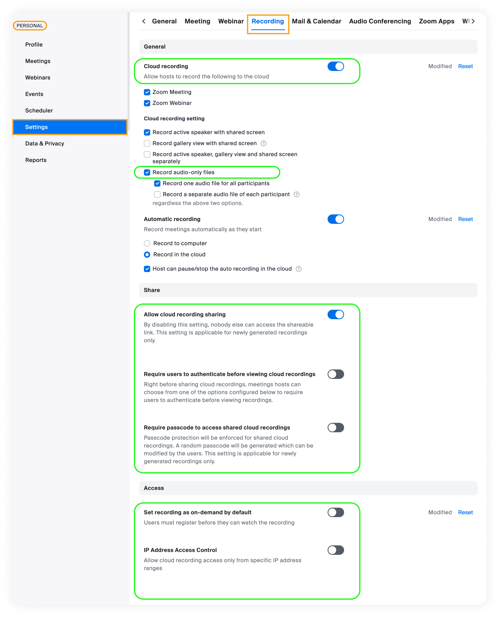 Step 1: Enable Cloud Recording settings in Zoom (Personal)