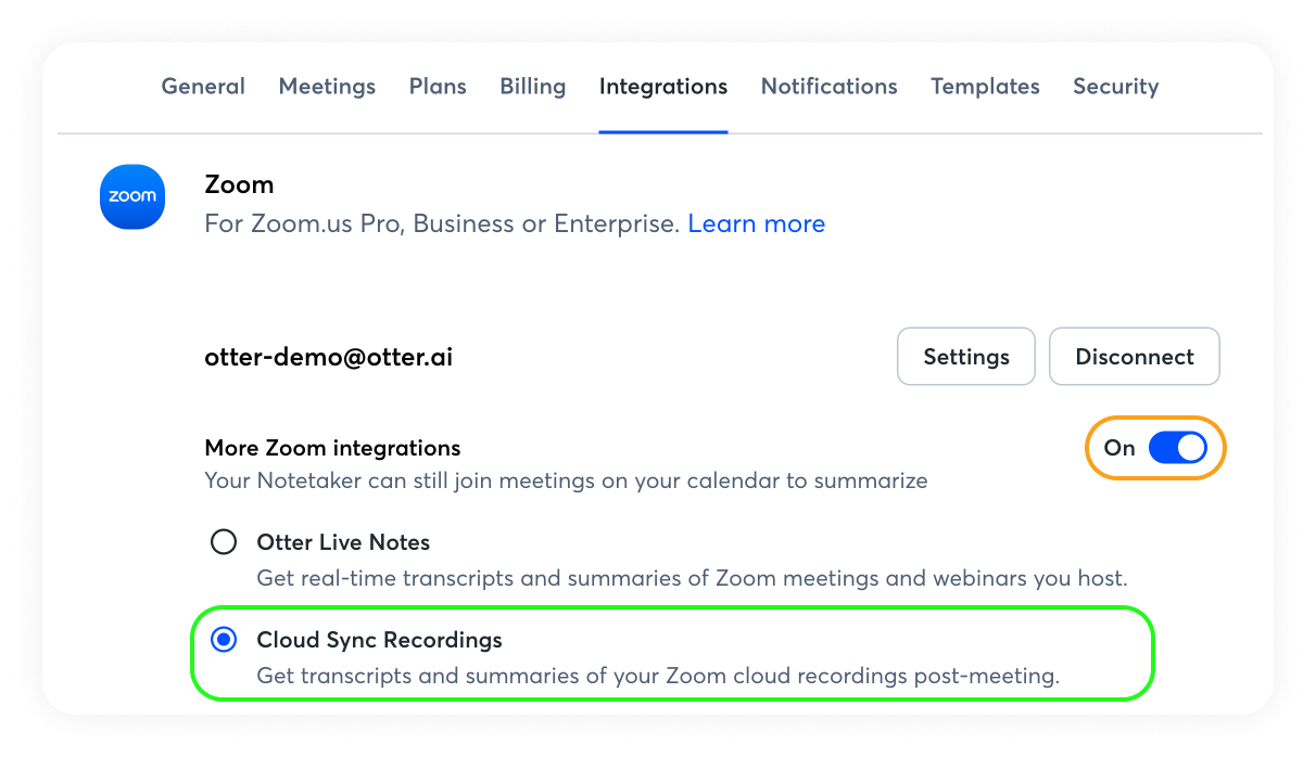 - Try a testing recording by starting a Zoom meeting, recording to the cloud, and verifying if the conversation syncs to Otter.