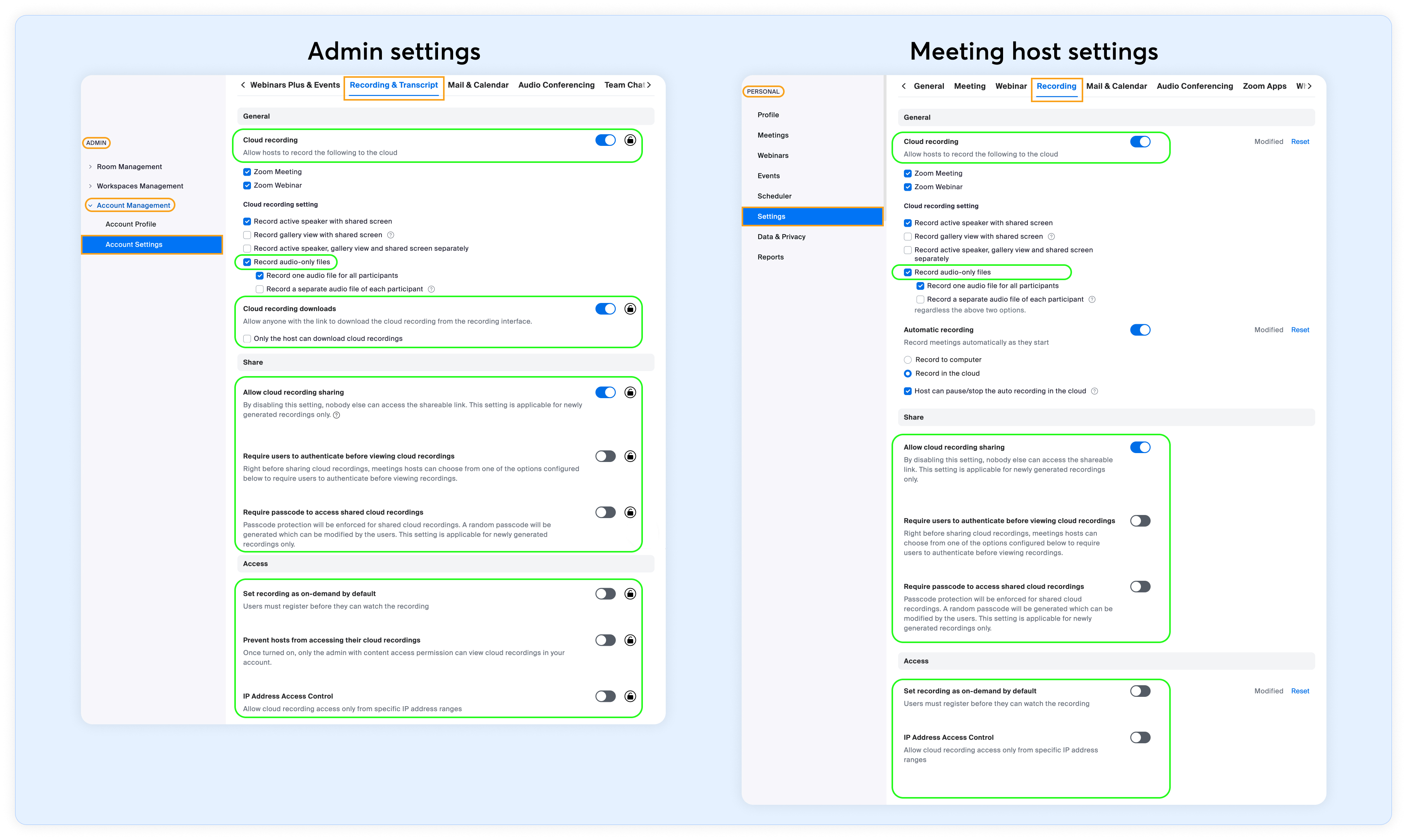 - Ensure both admin and meeting hosts enable the correct settings.