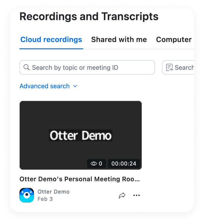 - Check whether the recording appears in your Zoom Cloud Recordings. If it does not show up there, we will not be able to sync the recording to Otter.