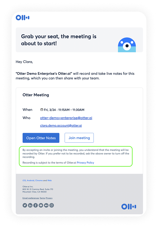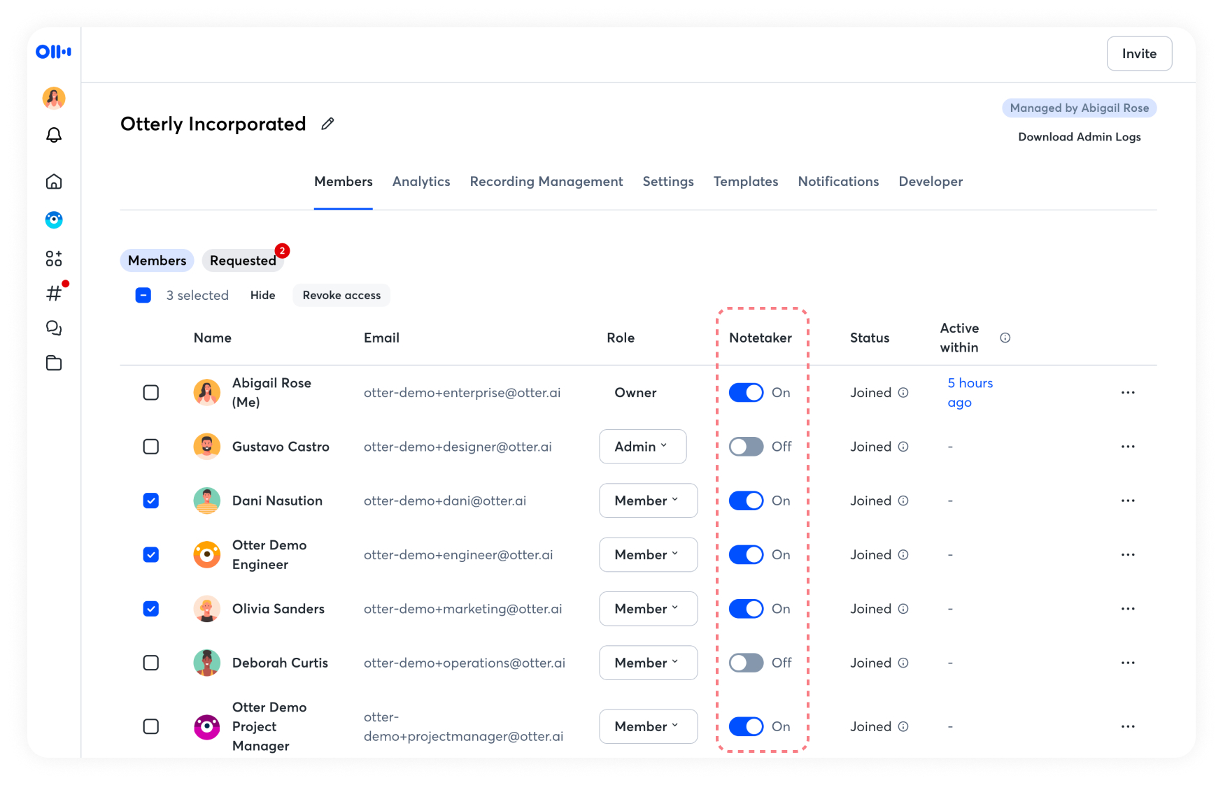 While Otter Notetaker is an incredible feature that fully automates your note-taking experience, we understand that not all organizations would like their users to send Notetaker to meetings. You have full control over which users can use Notetaker.