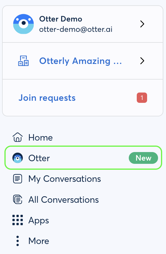 - Click Otter on the left-side navigation menu.