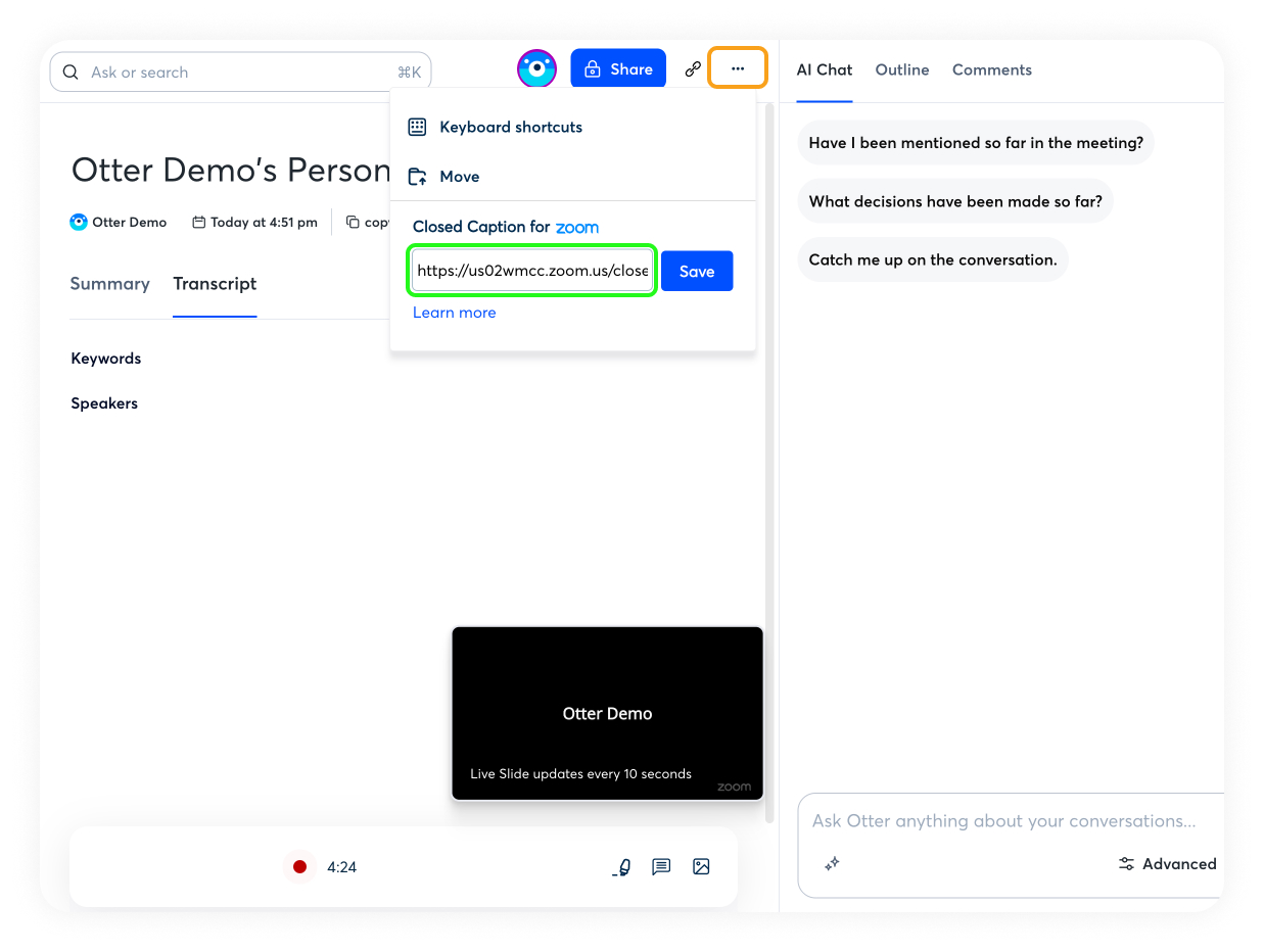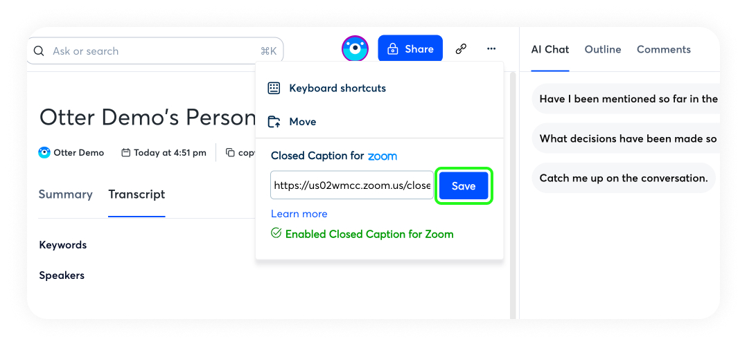 Set up Otter Live Captioning for Zoom meetings
