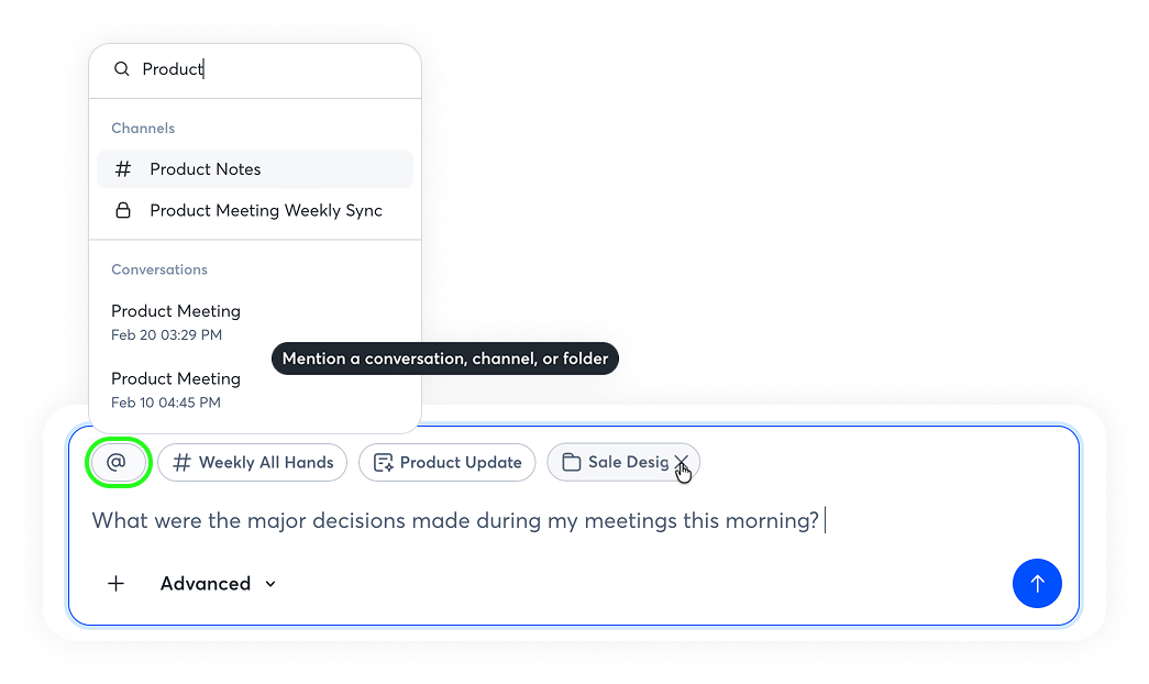 Some features, such as session history and a unified chat experience across conversations, channels, and folders, are only available in AI Chat 2.0 and are not yet supported on mobile.