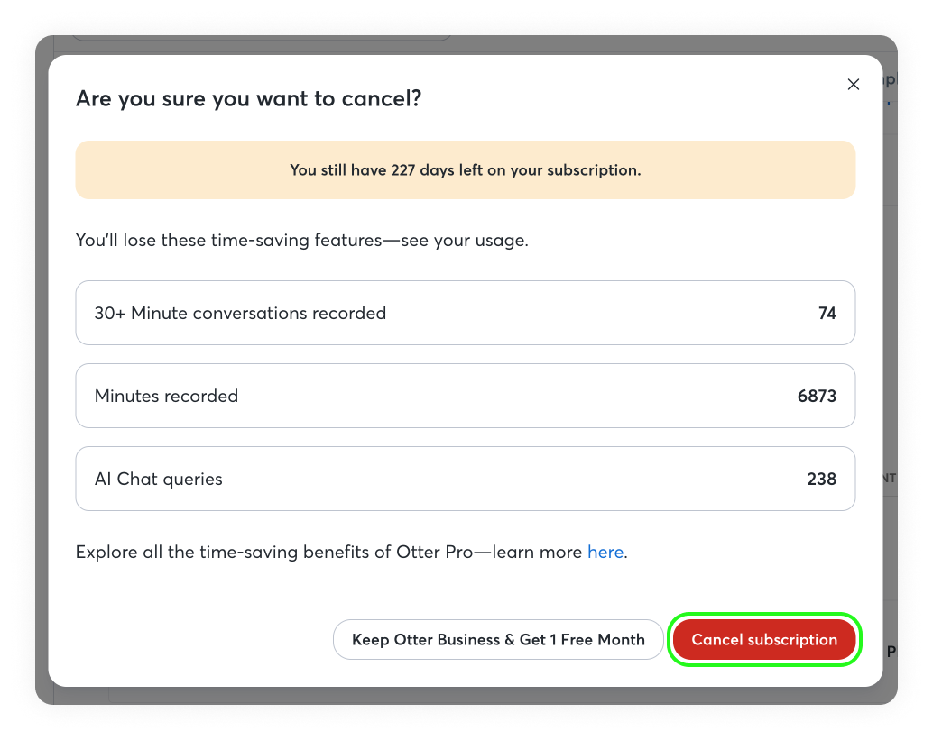 - Subscriptions are non-refundable as explained in the Otter Terms of Service.