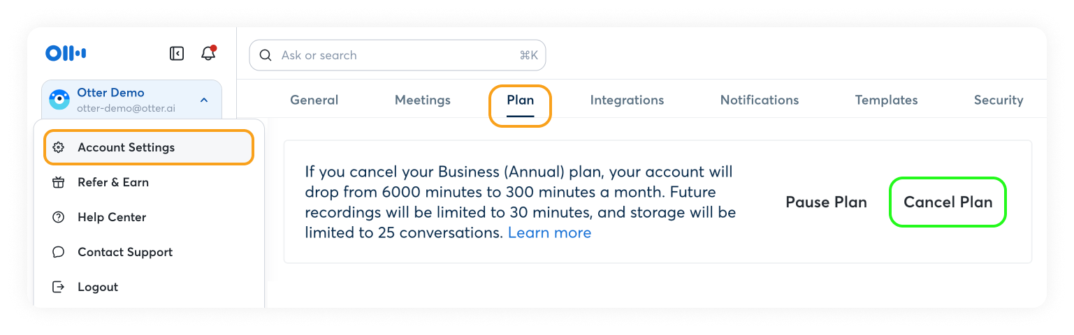 - You may be able to manage your Otter subscription on the mobile app, depending on your plan and where you purchased your subscription.