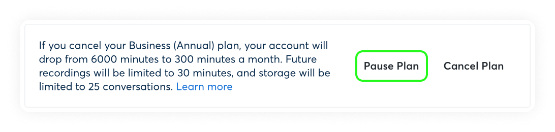 - You can pause your subscription in Account Settings > Plan. Click Pause Plan.