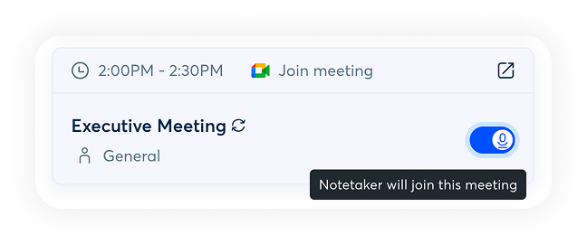 Notetaker will record meetings that are set to auto-join.