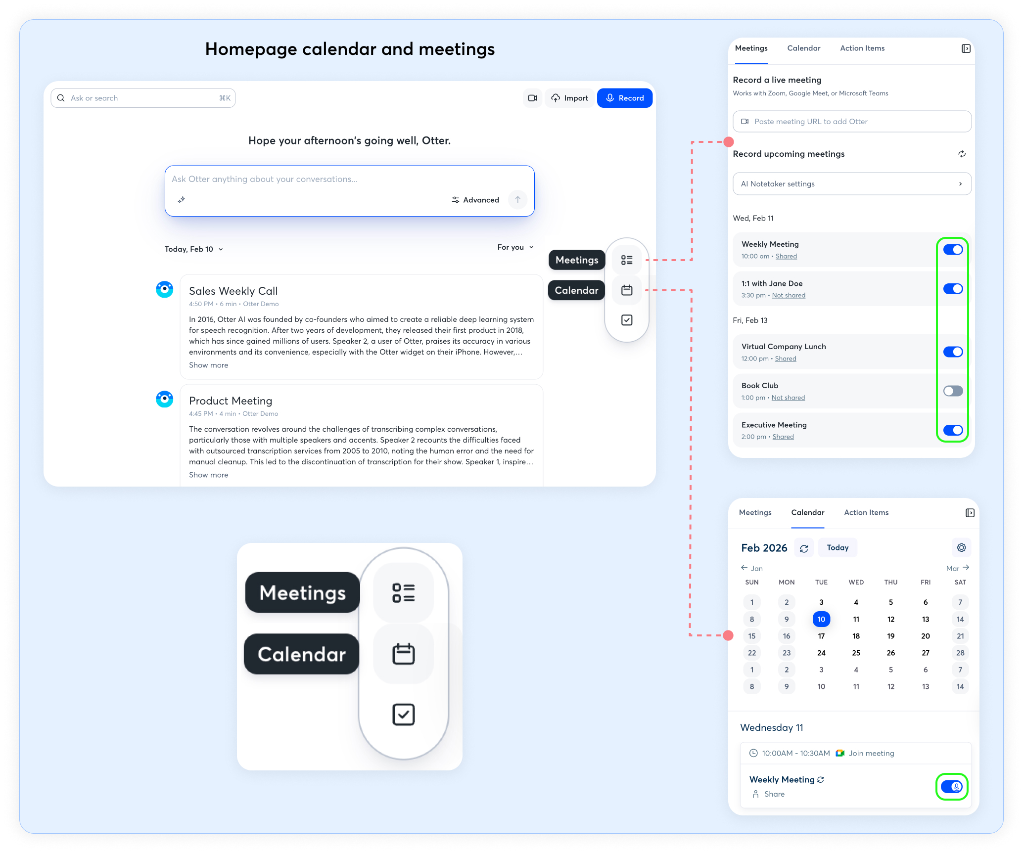 Otter [[NOTETAKER]] can automatically join all calendar events to record and transcribe meetings. If you prefer to manually choose which meetings Otter records, you can disable auto-join and select individual calendar events for recording.