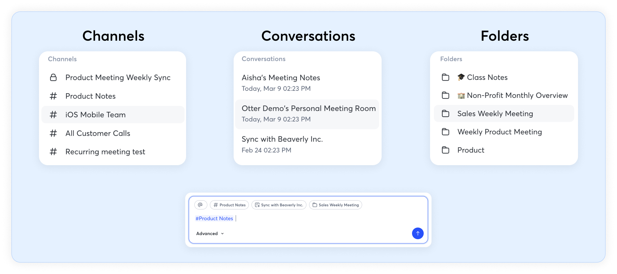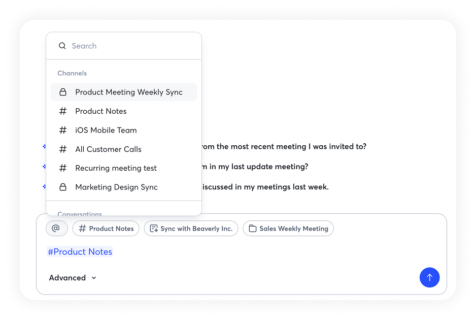 You can select specific conversations, channels, or folders as context when using AI Chat to query exactly what you need.
