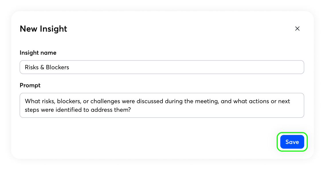 Fill out the Insight name and Prompt fields. Click Save when finished.