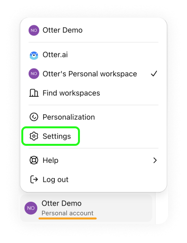 Note: To connect to Otter MCP, you will need to connect through the web version at this time. Setting up through the desktop app is not yet supported. Once connected through the web version, it will be available on the desktop app. - Click on your profile in the lower left corner. Select Workspace settings in the expanded menu.