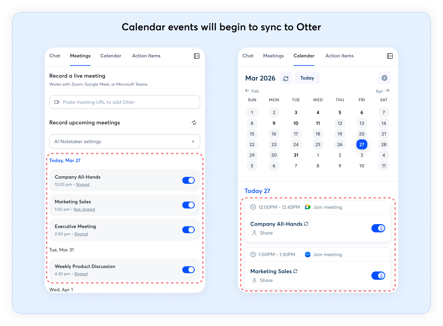 - Automatically share your Otter conversations with your calendar contacts