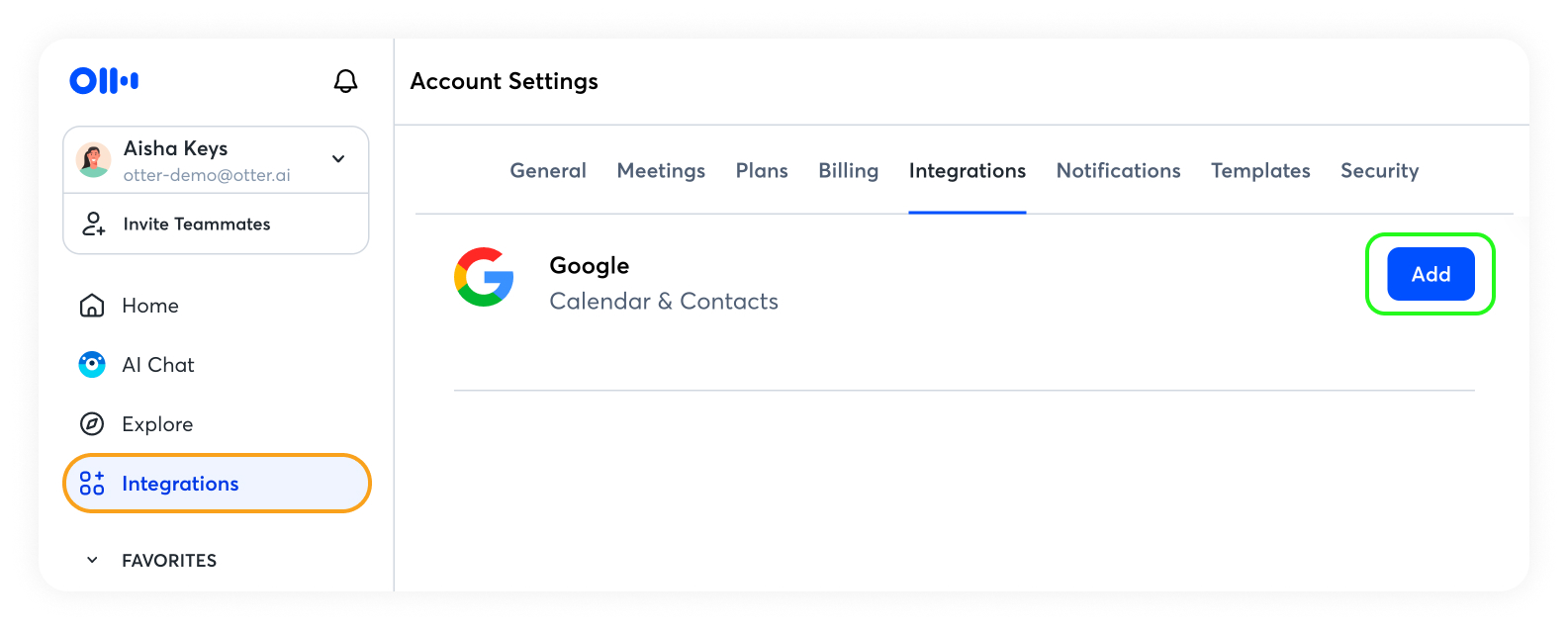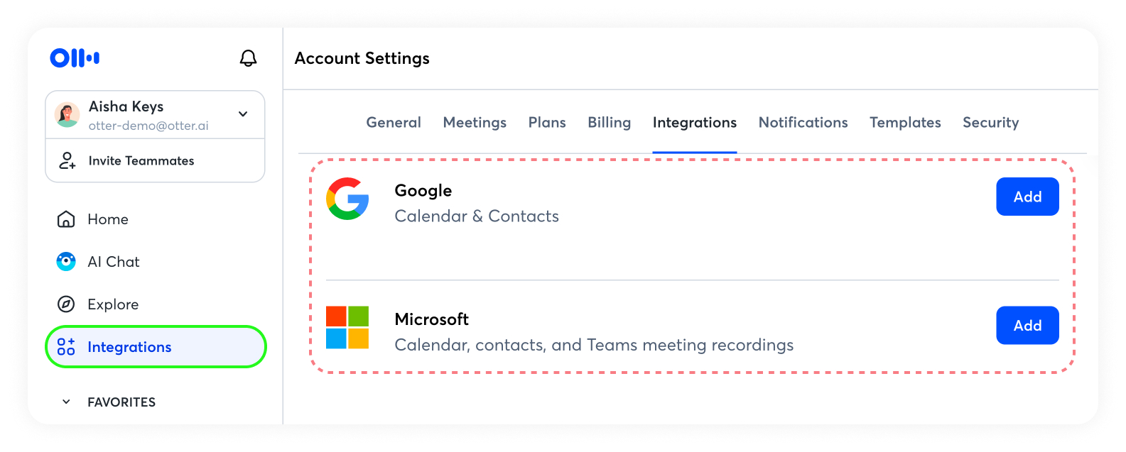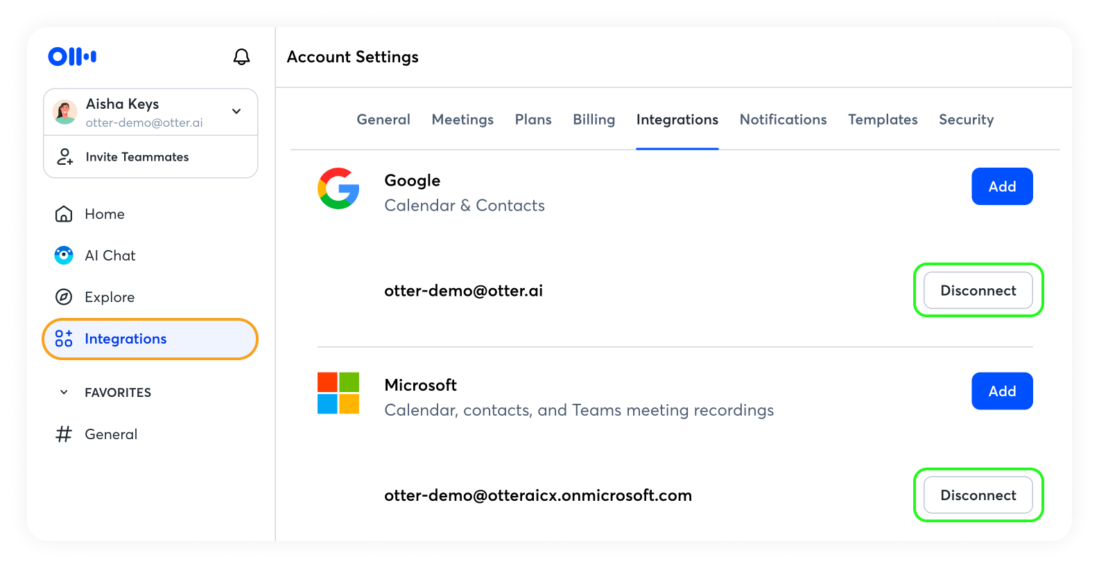 Connect your Google Calendar or Microsoft Outlook calendar at any time on the Integrations page in Otter.