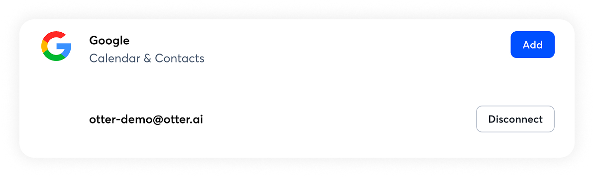 Your Google Calendar is now connected to Otter. To connect more Google accounts, repeat steps 1-2.
