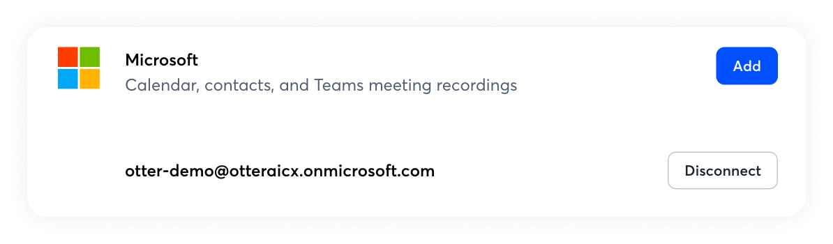 Your Microsoft Calendar is now connected to Otter. To connect more Microsoft accounts, repeat steps 1-2.
