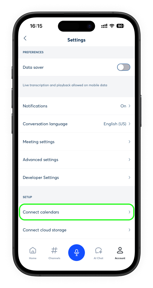 Connect your calendar account on the mobile app