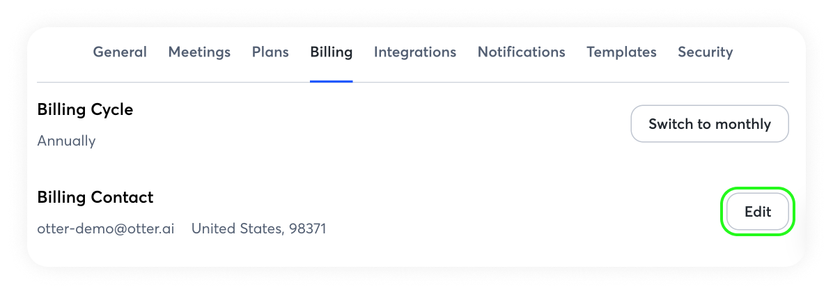Note: If you are part of a Workspace, only an admin can update the billing ZIP code. Contact your Otter Admin to manage billing information.