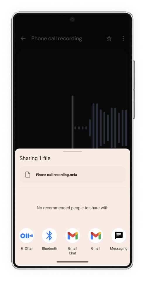 Google offers a built-in phone call recording feature on supported Android devices. Once a call is recorded, the audio file can be shared and imported into Otter for transcription and speaker tagging.