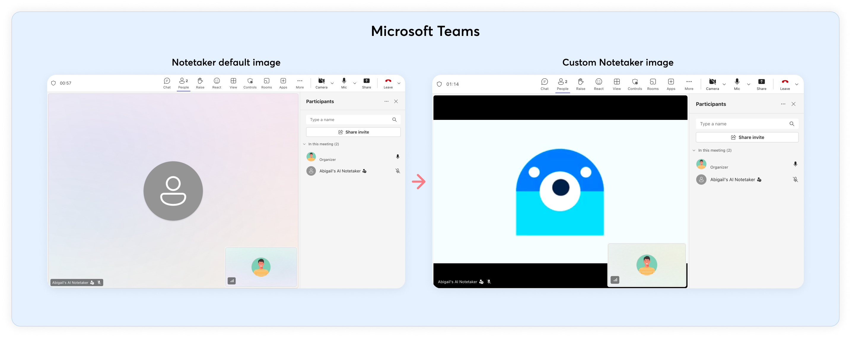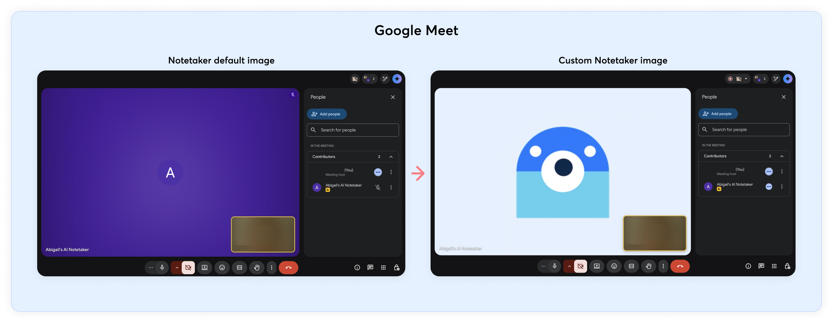 Once we have uploaded the image to your workspace, the Notetaker will reflect the custom image in Google Meet and Microsoft Teams meetings. We currently do not support Zoom.